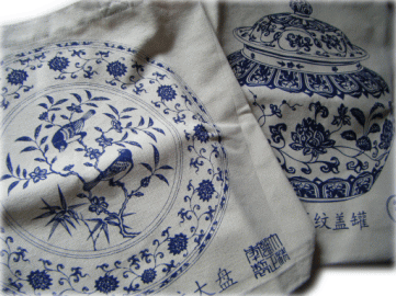 青一色で描かれた、美しい花鳥や紋様たち(プリントは片面のみです)